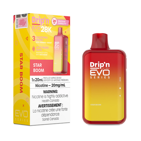 The Drip'n EVO 28,000 Puffs is the ultimate disposable vape for those who seek maximum longevity and performance. With a massive e-juice capacity and a rechargeable battery, this device is designed to last.